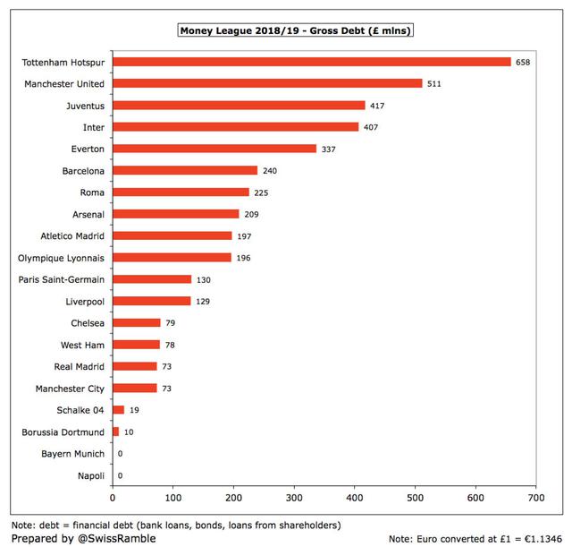 Juventus e Inter tra le più indebitate d'Europa, il tweet di Pistocchi. Nel calcio di oggi non sempre chi spende di più vince. Lo ribadisce anche il giornalista Maurizio Pistocchi che ha postato una grafica sul suo profilo Twitter: "La classifica dei club più indebitati d’europa: in testa c’è il #Tottenham ( che ha costruito il nuovo stadio) poi il #ManchUtd Subito dopo #Juventus e #Inter . Il Napoli di DeLaurentiis è la meno indebitata d’Europa : 0. Debito per crescere, investimenti sulle strutture, campioni costosi ma indispensabili” Poi vedi che il BayernMonaco che ha fatto il Triplete e vinto la 6^ Champions della sua storia è Campione anche di Gestione e capisci che sono le scuse di chi non sa nè vincere nè gestire".
