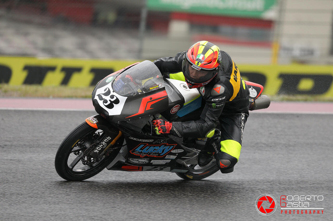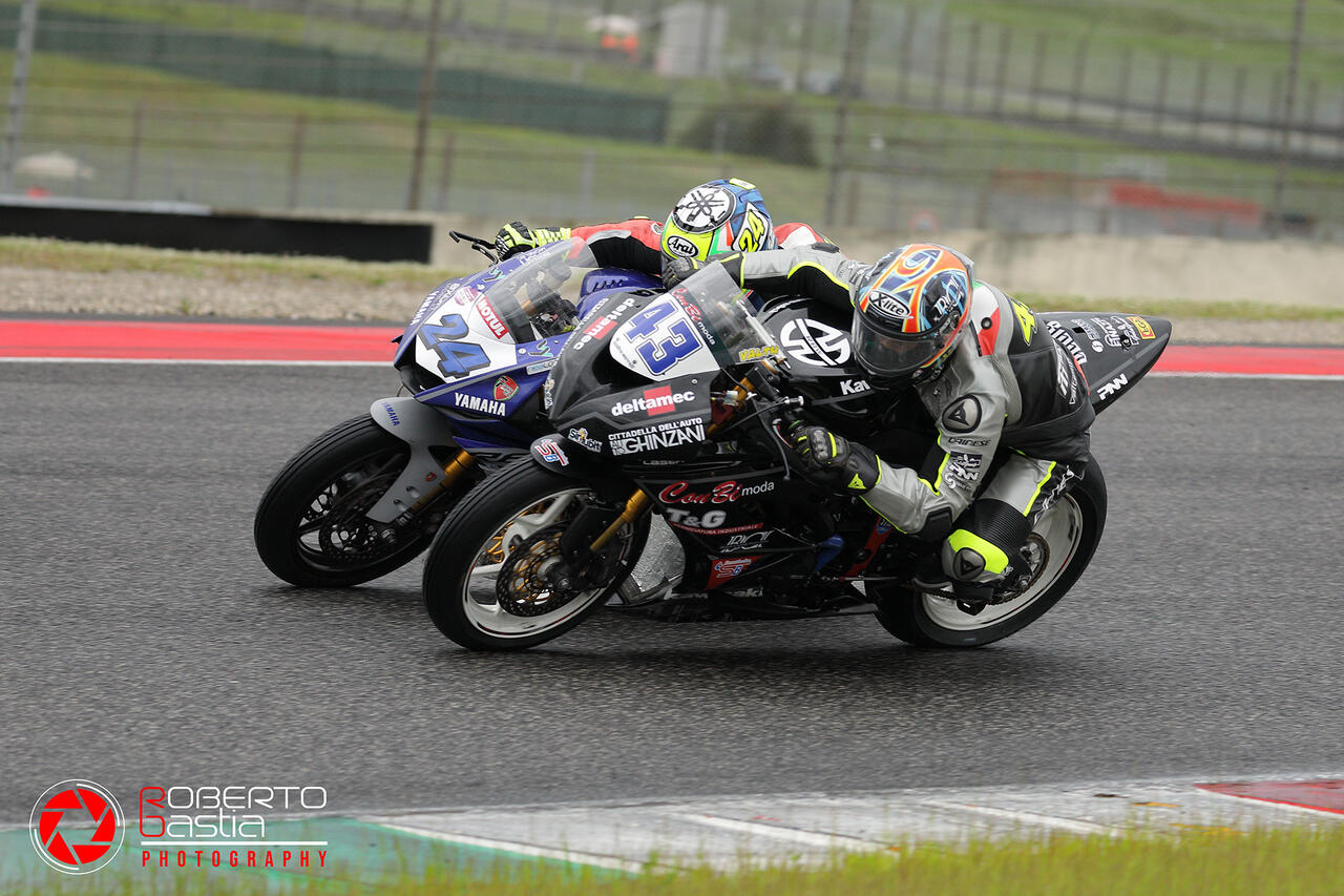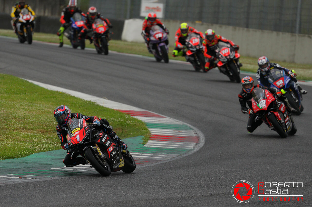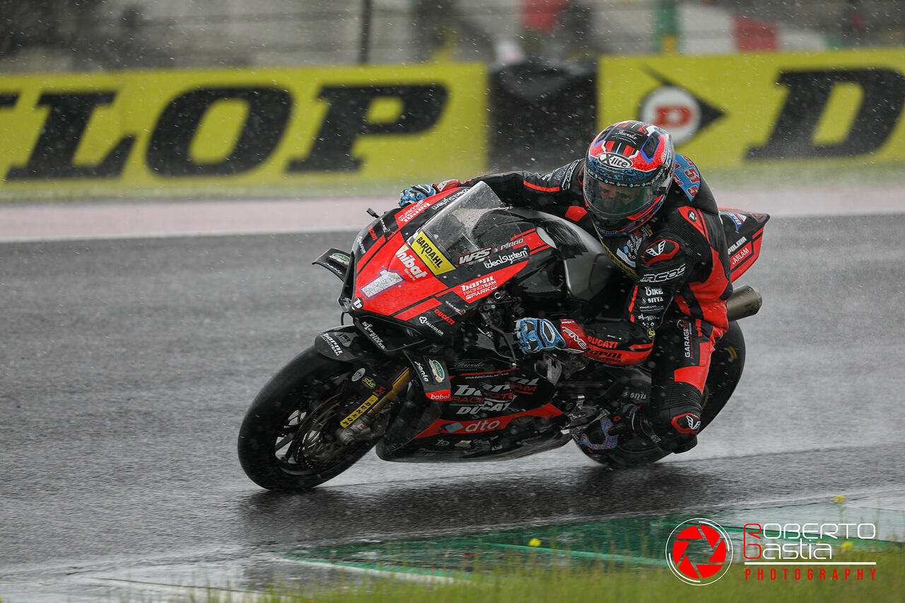 Emozioni, adrenalina e tanta acqua. Le gare del sabato del Round Pata al Mugello Circuit sono state caratterizzate da condizioni meteo difficili. Tornando al CIV, Michele Pirro ha volato sull’acqua del Mugello. In una gara Sbk inizialmente interrotta per pioggia, ripartita sulla distanza di 10 giri e dichiarata wet, il campione in carica ha fatto il vuoto dietro di se. Il pilota Ducati Barni Spark, scattato dalla pole, ha condotto dall’inizio alla fine, andando a conquistare la seconda vittoria di questa stagione con un vantaggio di oltre 18 secondi sul primo dei suoi inseguitori: Alessandro Delbianco, riminese. L’alfiere Yamaha Keope è tornato nelle posizioni di vertice, riuscendo ad avere la meglio su Lorenzo Zanetti. Il centauro Ducati Broncos ha chiuso ad oltre 22 secondi da Pirro, complice anche una scelta di gomma intermedia. In classifica generale Pirro ha riconquistato la vetta con 59 p. davanti a Zanetti con 57 p. e Vitali (Honda Scuderia Improve, 7° in pista) a 42 p. Da segnalare come questa per Pirro sia stata la 60 vittoria nel CIV Sbk su 90 gare: un record invidiabile. 70esimo successo nell’italiano contando anche quelli in 125, Supersport e Stk1000.