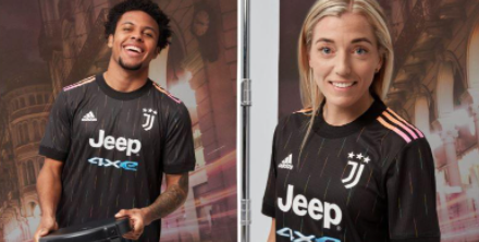 Il sito specializzato di maglie e kit del calcio Footy HeadLines ha svelato la seconda maglia della Juventus per la stagione sportiva 2021-2022. Dopo la maglia blu dell’anno scorso, quest’anno la divisa disegnata da Adidas sarà total black, con righine sottili bianche a solcare lo sfondo nero. Gli inserti e le bande laterali saranno invece rosa/arancione, con colori sfumati.