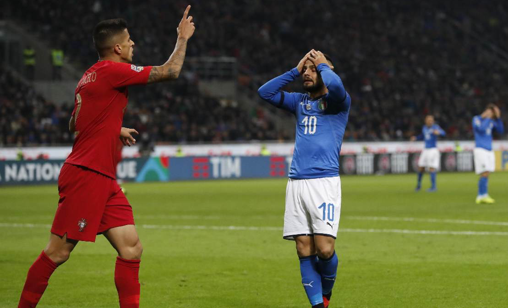 A San Siro gli Azzurri di Mancini giocano bene ma non vanno oltre lo 0-0 contro il Portogallo terminando in anticipo la propria avventura in Nations LeagueLa nostra prima Nations League finisce ai gironi ma tutto sommato poteva andare peggio. Per essere una squadra in piena crisi d’identità ed in fase di totale rinnovamento, questa Italia ha mostrato segnali di una crescita anche più rapida del previsto senza tradire il credo del suo tecnico Roberto Mancini. In uno stadio Meazza stracolmo, gli Azzurri hanno giocato un buon calcio dominando a tratti anche l’incontro con il Portogallo ma non sono riusciti a vincere a causa del solito problema: là davanti manca qualcuno in grado di trasformare in gol tutto il lavoro svolto. Si può però davvero parlare di dominio italiano in un primo tempo che ha visto Insigne e Florenzi provarci subito da fuori area prima che la qualità del centrocampo producesse giocate in grado di strappare applausi convinti. Rui Patricio ha dovuto inervenire almeno due volte per evitare il vantaggio azzurro senza che i suoi compagni trovasse lo spazio e la forza di reagire anche grazie al pressing alto della nostra Nazionale. Le prime vere occasioni per il Portogallo arrivano nel quarto d’ora finale della gara con Joao Mario e Carvalho quando l’Italia, complice anche la stanchezza, cala di colpo costringendo anche Donnarumma alla parata salvifica. È comunque uno 0-0 ben diverso da quello ottenuto un anno fa contro la Svezia. Ecco il commento del ct Roberto Mancini: “Nel calcio segnare è un particolare importante. A volte domini ma perdi subendo gol in contropiede. Credo che oggi abbiamo disputato un’ottima prestazione, dominato il primo tempo e poi siamo calati dal 70’ come era normale. Bisogna fare qualcosa in più per andare a segno ma ci sono stati passi avanti rispetto alla partita con la Polonia“. ITALIA-PORTOGALLO 0-0 Italia (4-3-3): Donnarumma; Florenzi, Bonucci, Chiellini, Biraghi; Barella, Jorginho, Verratti (36′ st Pellegrini); Chiesa (43′ st Berardi), Immobile (29′ st Lasagna), Insigne. All.: Mancini Portogallo (4-3-3): Rui Patricio; Cancelo, Ruben Dias, Fonte, Mario Rui; Pizzi (23′ st Joao Mario), W. Carvalho, Ruben Neves; Bernardo Silva, André Silva (46′ st Danilo), Bruma (40′ st Guerreiro). All.: Fernando Santos Arbitro: Makkelie (Olanda) Ammoniti: Ruben Neves, Mario Rui, Cancelo (P), Jorginho, Bonucci, Chiesa (I)