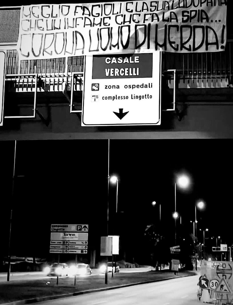 La Curva Sud della Juventus non ha apprezzato le rivelazioni del noto e controverso personaggio televisivo e lo ha fatto capire, esponendo un duro messaggio contro di lui da un cavalcavia a Torino: