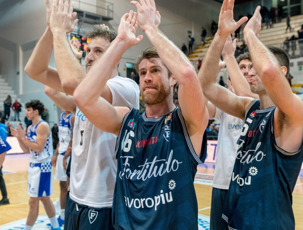 Prestazione solida per la Fortitudo che vince 89-95 a Roseto dopo un overtime ed allunga in vetta alla classifica. Decisivi i liberi ed il solito HasbrouckFinisce con il sorriso un girone d’andata da record per la Fortitudo che inanella 14 successi su 15 partite e festeggia l’Epifania volando a +6 sulle inseguitrici in classifica alla vigilia di un mese decisivo. La gara di Roseto è una prova di forza e concentrazione per gli uomini di Martino che spesso sono costretti ad inseguire ma alla fine piazzano la zampata decisiva al supplementare. In avvio prova subito a scappare la formazione locale ma Hasbrouck interrompe un lungo digiuno e riporta le Aquile a contatto anche grazie al lavoro sporco di Leunen contro una difesa atletica ed aggressiva. Il secondo quarto inizia dal 20-19 e vede la Fortitudo piazzare un bel 9-0 a metà tempo per trovare un vantaggio però effimero: Person è infatti indemoniato e tiene gli abruzzesi a galla trovando anche una clamorosa tripla da venti metri sulla sirena dell’intervallo per il 41-39 parziale. Roseto ancora generosa ma poco lucida e Fortitudo che resta in partita soprattutto grazie alla freddezza di Hasbrouck dalla lunetta prima che due falli tecnici animino più del dovuto gli animi senza però influire troppo sulla gara: è 64-62 il punteggio del terzo quarto. Minuti di errori e paura di perdere aprono la quarta frazione con Leunen che prova a prendere in mano la gara ma Pierich che glielo impedisce con un paio di bombe mortifere. Nella bagarre finale brilla Rosselli ma nessuno può evitare l’overtime in cui la Fortitudo fa subito il vuoto con un break di 11-0 che di fatto chiude le ostilità. La precisione ai liberi di Cinciarini neutralizza l’ultima fiammata di orgoglio rosetana e manda in archivio l’ennesima vittoria biancoblù. ROSETO SHARKS – FORTITUDO LAVOROPIU BOLOGNA 89-95 ot (20-19; 41-39; 64-62; 74-74) ROSETO SHARKS: Person 26, Cocciaretto NE, Rodriguez 7, Ianelli NE, Nikolic 2, Eboua 8, Bayehe NE, Sherrod 15, Akele 8, Panopio, Pierich 17, Bushati 6. All. D’Arcangeli. FORTITUDO LAVOROPIU BOLOGNA: Sgorbati, Cinciarini 12, Mancinelli, Simon, Benevelli 10, Leunen 9, Prunotto, Venuto 3, Rosselli 13, Fantinelli 15, Pini 7, Hasbrouck 26. All. Martino.
