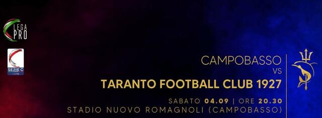 Campobasso-Taranto, match valido per il secondo turno del Girone C di Serie C, si giocherà allo Stadio Nuovo Romagnoli di Campobasso a partire dalle ore 20.30 di Sabato 4 Settembre 2021. In questa serata di calcio, vi farà compagnia Il Pallone Gonfiato, con la diretta testuale di Campobasso-Taranto a cura di Alessandro Pallotta.