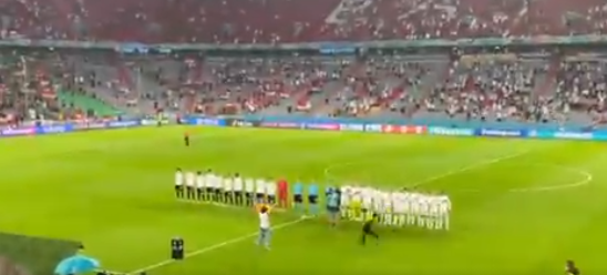 Oh wow! One spectator just ran on with a rainbow flag during the Hungarian national anthem. Loud cheers from the Germany block pic.twitter.com/EDJzdV0tbx