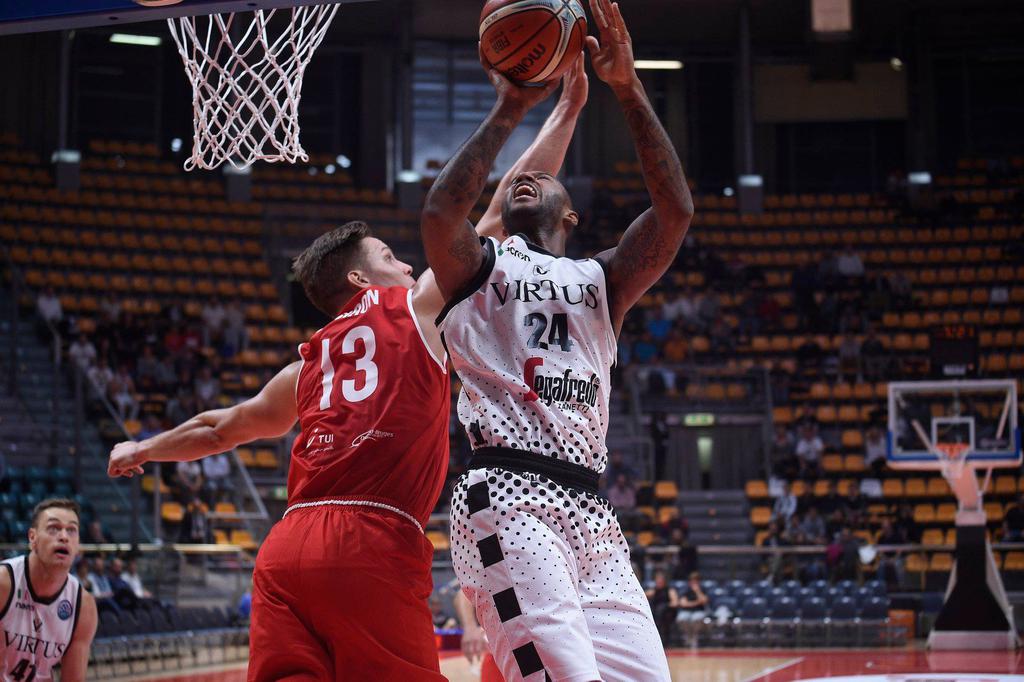 Dominio Virtus in Champions League: Ostenda va ko già nel secondo quarto. Passerella per i bianconeri che stravincono 89-60 Vinta la prima sul Klaipeda e combattuta fino allo spasmo la sfida contro Milano, la Virtus si ripropone in Champions League per sfidare Ostenda. La curiosità della serata è tutta nel capire se i bianconeri siano in grado di reggere l’urto fisico e mentale del secondo impegno in poche ore dopo lo sforzo sovrumano prodotto contro i campioni d’Italia. Gli avversari non sono certamente irresistibili ma la risposta dei bolognesi è incoraggiante soprattutto sul piano delle motivazioni e della concentrazione visto che la partita è di fatto durata appena un quarto.Attacchi a dir poco tiepidi nei primi minuti con gli ospiti che mettono il naso avanti almeno fino a quando il solito Punter non piazza l’ormai classica tripla siglando l’illusoria rimonta (11-9 al 6′): la gara resta sempre in bilico con le squadre a rincorrersi su ogni canestro e difese decisamente rivedibili mentre il punteggio inizia ad alzarsi. È MBaye l’uomo della provvidenza per una Virtus che arriva al primo break sul -1 (21-22). La bomba del sorpasso stavolta porta la firma di Martin prontamente imitato da Baldi Rossi per il primo vero parziale bianconero (12-0) che ribalta completamente gli equilibri in avvio di secondo quarto. Anche Cournooh si unisce alla festa e così gli uomini di Sacripanti volano sul +16 (39-23) mettendo di fatto in ghiaccio la gara con ampio anticipo: si arriva infatti all’intervallo lungo sul 43-25 con i belgi capaci di segnare appena 3 punti nel periodo. Il vantaggio supera le 20 lunghezze già in principio di terza frazione con Qvale che si diverte a perforare la difesa di Ostenda rendendo pura accademia il resto della gara. Si arriva così a superare i 30 punti di distacco tra le due squadre ed il punteggio di fine terzo quarto è un abbastanza clamoroso 70-39. L’ultimo periodo diventa anche il momento dei ragazzini con Cappelletti e Berti ad unirsi al quintetto delle riserve facendo risparmiare preziose energie agli americani senza far mai far calare troppo l’intensità. Le ovazioni del PalaDozza accolgono i canestri dei due giovanissimi ma anche del redivivo Aradori ed accompagnano così la Virtus al comodissimo finale di 89-60: tutto davvero troppo facile. VIRTUS SEGAFREDO BOLOGNA-FILOU OSTENDE 89-60 (21-22, 43-25, 70-39) VIRTUS SEGAFREDO BOLOGNA: Punter 11, Martin 5, Pajola 6, Taylor 3, Baldi Rossi 3, Cappelletti 6, Kravic 6, Aradori 10, Berti 4, MBaye 14, Cournooh 8, Qvale 15. All: Sacripanti. FILOU OSTENDE: Williams, Lambrecht 4, Lasisi 5, Schwartz 2, Buza, Mwema 7, Desiron 10, Djordjevic 6, Kesteloot 5, Fieler 5, Maric 6, Djurisic 8. All: Gjergja.