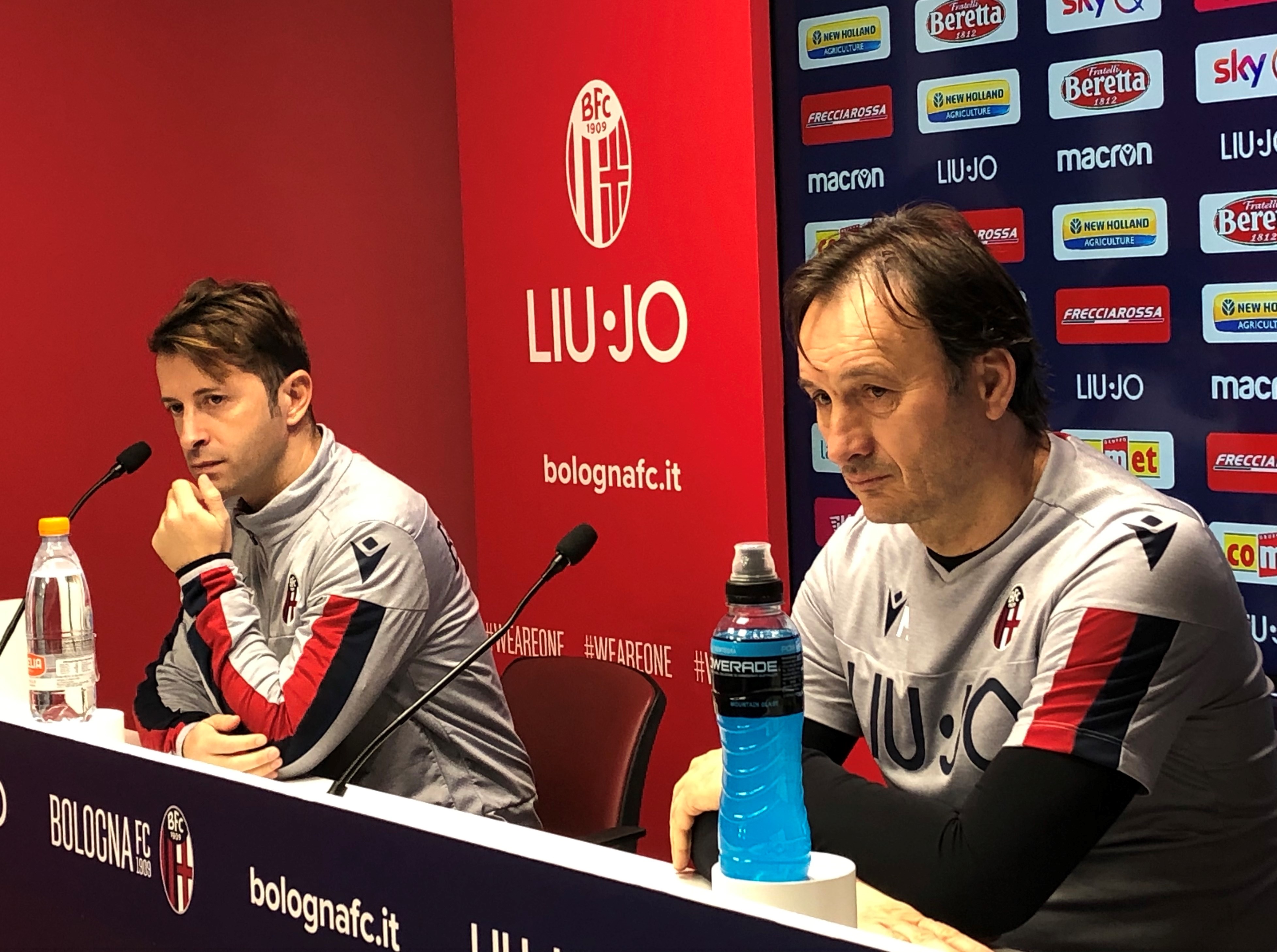 De Leo: “Dobbiamo riprendere il trend positivo di qualche settimana fa. Anche nelle ultime gare ci sono state delle buone prestazioni. Contro l’Hellas Verona abbiamo fatto passi indietro a causa dell’espulsione. L’imperativo, se vogliamo migliorare, deve essere quello di limare e colmare i nostri difetti. Con la Fiorentina e con il Torino dovevamo essere più cinici, stiamo lasciando per strada molto punti, urge capitalizzare di più. Emergenza reparto difensivo? Ai fini della sintonia nei vari settori militare con gli stessi uomini aiuta. Paz e Corbo hanno sempre lavorato con massima disciplina ed applicazione elevata”. In 15 partite di campionato il Bologna ha sempre preso gol. “Il gruppo sta facendo dei passi avanti sotto tale profilo, recentemente ci stiamo disimpegnando bene. Però al netto di ciò che creiamo e ciò che subiamo, siamo in difetto. Mai calare l’attenzione, altrimenti diventiamo più remissivi e subiamo gli avversari. La SPAL ha un’identità ben precisa, i ferraresi giocano da almeno 4 anni insieme e sono sempre uniti e vivi. Troviamo una compagine in fiducia reduce dal successo di Bergamo, tuttavia disponiamo di idee chiare e precise, avendo tutti gli strumenti e le carte in regola per duellare. Stiamo respirando aria da derby, il clima e l’ambiente sarà caldo. Barrow? L’assenza di Sansone ci fa fare una serie di riflessioni: Svanberg, Palacio oppure Barrow. Oggi decideremo, non ci dobbiamo snaturare. Nicola è adatto al modulo e agli schemi, oltre a ripartire ci garantisce diversi equilibri difensivi. Con la sua squalifica siamo chiamati ad un lavoro supplementare. Centrocampo? È un momento in cui stiamo alternando i giocatori perché stanno compiendo un salto di qualità. Poli ci sta aiutando anche in questo: la vecchia guardia insegna ai giovani. Esiste una gerarchia prestabilita? Schierare i calciatori a prescindere non ha senso. C’è grande competitività in allenamento. Per gli elementi meno datati, sussistono obiettivi a breve termine, finalizzati alla sfida della domenica, e traguardi per la loro valorizzazione a medio-lungo termine. La competizione è sana, noi stiamo inserendo gli atleti gradualmente. Skov Olsen, per esempio, sta crescendo tanto. Tomiyasu? Contenti del progresso di Takehiro. Se optiamo per il baricentro alto trae vantaggi perfino lui, altrimenti giustamente va in difficoltà. La polemica sull’esposizione politica di Mihajlovic? Non voglio entrare nella diatriba aperta negli ultimi giorni. Non è bello che ci siano state reazioni brutali legate alla sua salute. Io evidenzio che Bologna è una città ospitale che ci ha accolto splendidamente“.