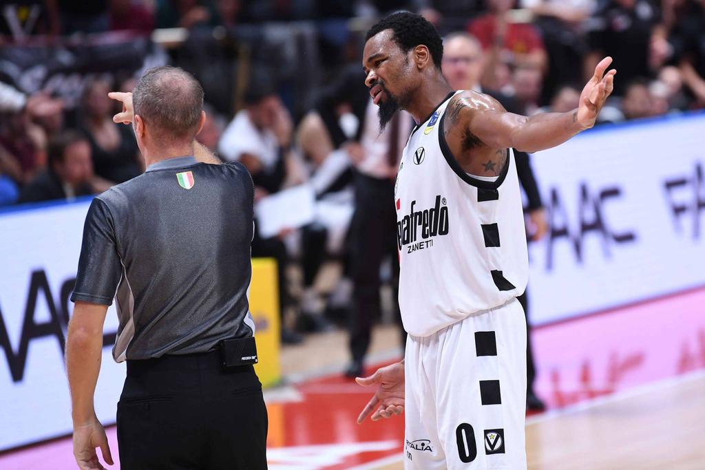 Che disastro per la Virtus che perde 66-84 contro Cremona. Gli americani non sono in giornata e la banda di Sacripanti deraglia Brusco stop per la Virtus che, tradita dal pacchetto statunitense, va a fondo al PalaDozza contro Cremona pur restando in partita per più di metà gara. L’assenza di Qvale probabilmente inizia a farsi sentire sul gruppo di Sacripanti che paga dazio alle rotazioni ristrette finendo per incassare una sconfitta pesante nel punteggio ma che potrebbe dare una spinta ulteriore alla squadra.Avvio positivo per i bianconeri nonostante la presenza del baby Berti in quintetto ma Cremona va subito avanti con Aldridge e Ricci che approfittano della svagatezza difensiva virtussina per indicare subito la strada giusta ai compagni. Solo Aradori riesce a rispondere almeno fino al secondo quarto quando Martin cerca di mettere la sua energia al servizio della squadra ed i canestri di Pajola. Cappelletti e MBaye regalano la rimonta alle Vu Nere. Nonostante un tecnico a Sacchetti, Cremona resta a contatto chiudendo la prima metà della gara sul +1 grazie ad una tripla sulla sirena. La Virtus però non può ottenere dal solo Martin quello che non riesce a Taylor e Punter così inevitabilmente nel terzo periodo il divario s allunga anche grazie a Mathiang e Crawford mentre il solo Aradori prova a tenere vive le speranze emiliane contentendo il divario sotto la doppia cifra. C’è un ultimo barlume di vita nella frazione finale con i canestri di Taylor e Kravic che portano la Virtus al -6 ma nel finale sono gli ospiti ad avere il talento e la lucidità per restare sempre avanti allungando le distanze nei minuti conclusivi grazie anche all’uscita dal campo per falli del playmaker bianconero. VIRTUS SEGAFREDO BOLOGNA – VANOLI CREMONA 66-84 (17-22, 37-38; 54-63) VIRTUS SEGAFREDO BOLOGNA: Punter 6; Martin 10; Pajola 3; Taylor 6; Baldi Rossi 1; Cappelletti 3; Kravic 8; Aradori 16; Berti 2; M’Baye 8; Cournooh 3; Camara NE. All. Sacripanti VANOLI CREMONA: Saunders 9; Gazzotti 0; Diener 8; Ricci 16; Demps 9; Ruzzier 3; Portannese NE; Mathiang 10; Crawford 13; Aldridge 16. All. Sacchetti