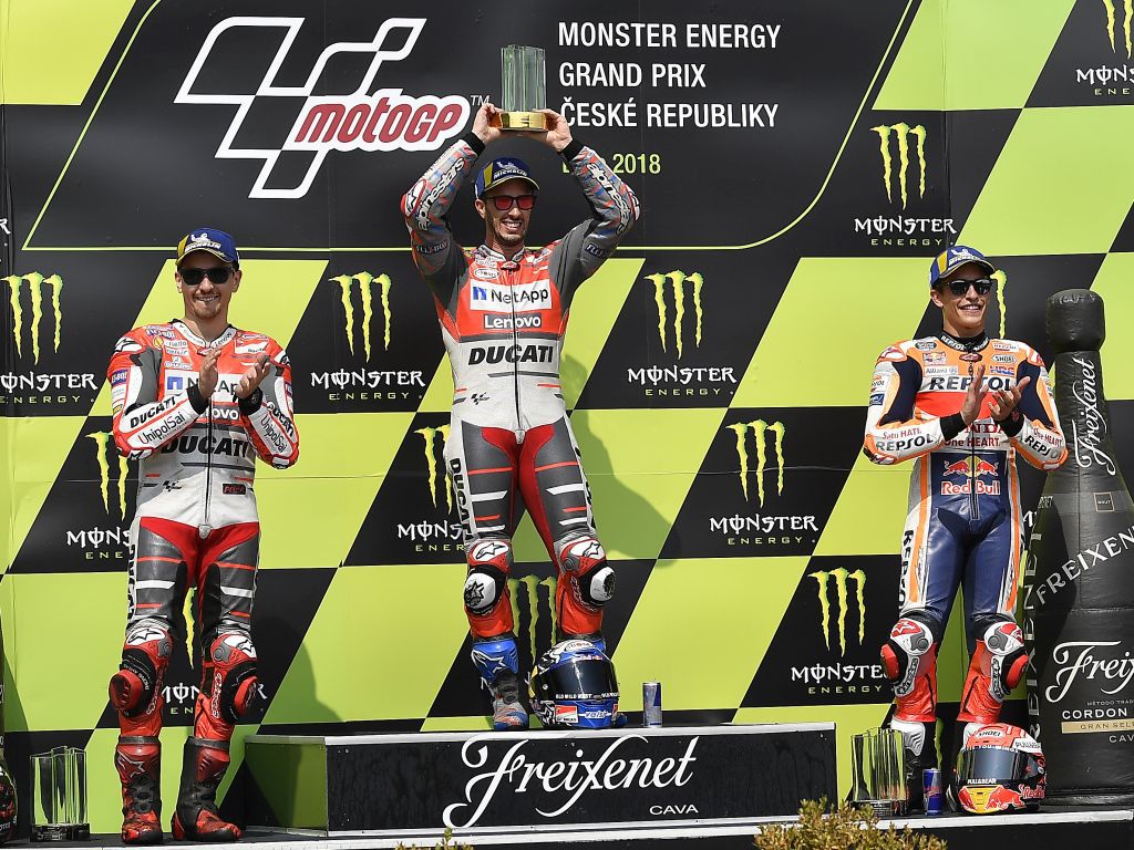 Grande doppietta per la Ducati a Brno con Dovizioso primo e Lorenzo secondo. Marquez chiude il podio e va a +49 su Rossi