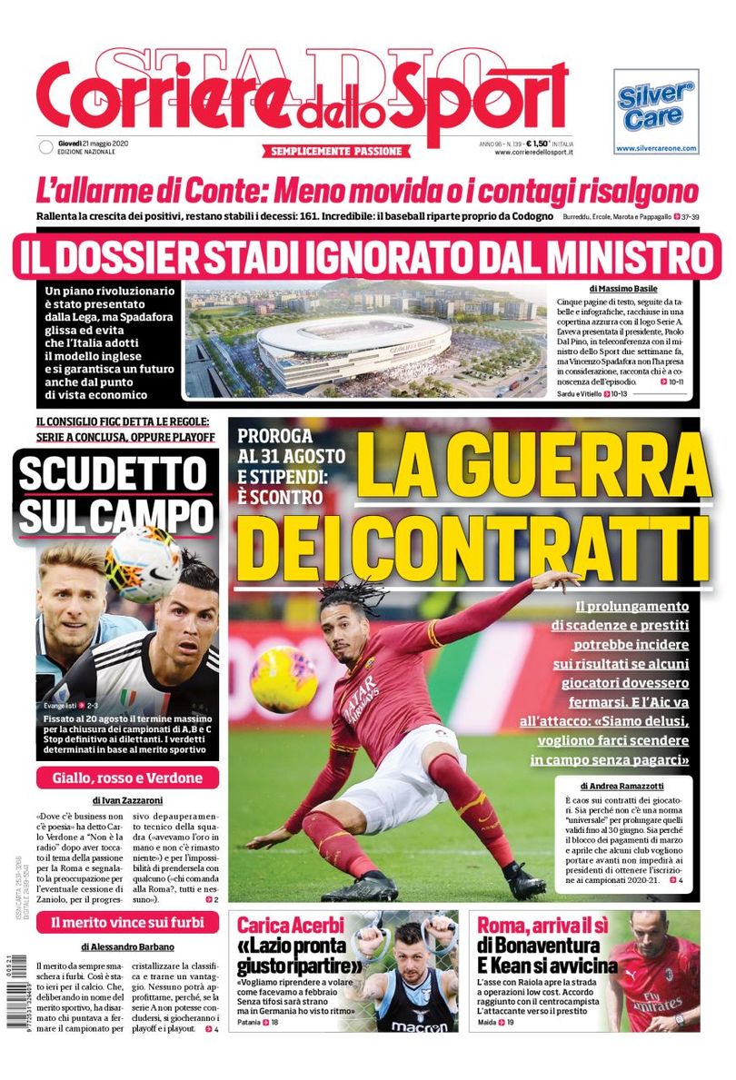 Edicola IPG: le prime pagine dei quotidiani del 21 maggio 20 Maggio 2020 di Simone Biancofiore Ecco le prime pagine delle principali testate sportive Corriere dello Sport TuttoSport La Gazzetta dello Sport