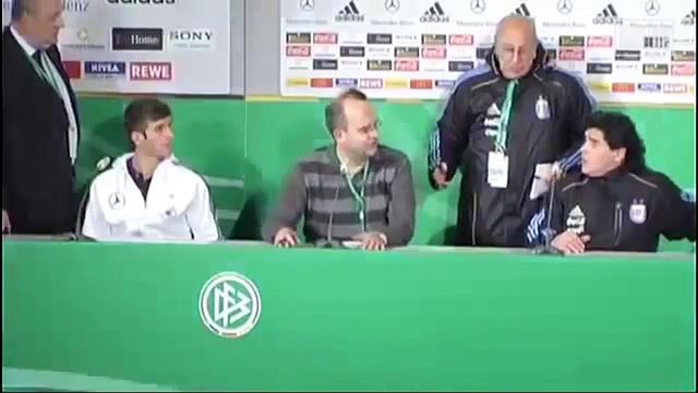 L'avventura di Diego Armando Maradona sulla panchina dell'Argentina non fu senz'altro un'esperienza fortunata. El Pibe de Oro non convinse proprio nessuno alla guida della sua nazionale, la quale venne eliminata malamente dalla Germania nel quarto di finale del Mondiale di Sudafrica nel 2010. Maradona non riuscì a ripetere i successi che ottenne da giocatore con l'albiceleste nel 1986, quando vinse il Mondiale in Messico sfoderando prestazioni da urlo come quella contro l'Inghilterra. Nella storia di Maradona in nazionale, la Germania è sempre stata l'acerrima nemica dell'ex Napoli, avendo affrontato contro i tedeschi finali mozziafiato tra l'86 e il 1990. Durante una conferenza stampa alla vigilia del'incontro amichevole Germania-Argentina, Maradona non riconobbe il famoso giocatore del Bayern Monaco e della nazionale tedesca Thomas Muller, chiamandolo addorittura "raccattapalle". Una definizione che lo stesso Muller si legò al dito. Vi proponiamo il video di questo curioso episodio proposto dalla Bild: