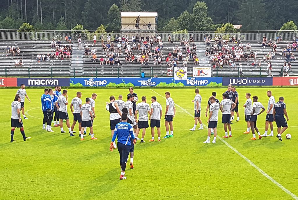 Siamo ormai giunti alle ultime curve del ritiro di Pinzolo del Bologna che oggi ha svolto il suo ultimo doppio allenamento prima del doppio impegno contro Comano Terme e Southampton Under 23.Dopo la mezza giornata libera di ieri a cui ha fatto seguito una cena in totale autonomia a ranghi separati (la squadra al ristorante “La Botte” e staff tecnico allo “Speckstuber Alimonta”), mister Inzaghi ha deciso di ricominciare a torchiare i suoi ragazzi dal punto di vista tattico. Se infatti sul piano atletico ufficiosamente filtra soddisfazione per la risposta della squadra a carichi di lavoro ben superiori a quelli dello scorso ritiro estivo, resta ancora tanto da fare per dare un’identità di gioco precisa ad un gruppo che manca di stelle o stelline. Poco talento e tanta voglia di faticare insieme: questi saranno probabilmente i cardini del nuovo Bologna che il tecnico piacentino sta plasmando partendo dalle basi per inserire giorno dopo giorno nuovi concetti. Nella giornata di oggi il lavoro è stato concentrato in particolare sullo sviluppo dell’azione dal recupero palla difensivo secondo varie opzioni: ad esempio inserimento e cross della mezzala dal fondo, sovrapposizione dell’esterno o imbucata filtrante per vie centrali. Tanti modi per provare a far male all’avversario ma una sola certezza: il Bologna sarà una squadra che proverà a colpire in modo rapido e letale senza poter stazionare stabilmente nella metà campo avversaria. Tra le ragionevoli certezze si fa spazio anche quella di vedere in campo già da domani Federico Santander. Il centravanti paraguaiano, da subito diventato un idolo per i tifosi rossoblù, ha lavorato duramente nel corso della settimana raggiungendo un livello atletico paragonabile a quello dei compagni e mostrato di non temere più neanche i contrasti. Possibile quindi che sia lanciato in campo dal primo minuto già domani insieme a Palacio. Attesa anche per vedere all’opera, in un centrocampo privato di uomini importanti come Donsah e Poli, due giovanissimi che dovranno sfruttare l’anno per passare da potenziali stelline a concrete certezze. Si tratta di Mattias Svanberg che ha già messo in mostra talento e buon tiro ma personalità intermittente e di Riccardo Orsolini che risulta sicuramente uno dei più in palla della rosa, sempre pronto a cercare la giocata e magari anche la conclusione acrobatica.